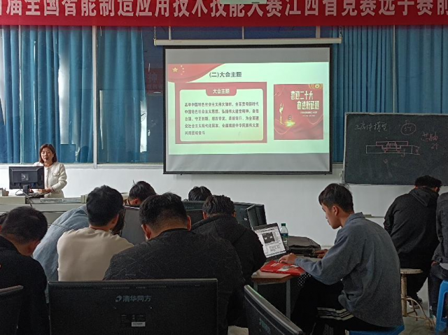 11月23日中午11点,机电工程系周金莲老师在数控中心101教室以《党的二十大报告辅导读本》为蓝本,以“铭记初心,勇担新使命”为主题的党课宣讲会。机电工程系20工业机器人技术班全体成员参加。