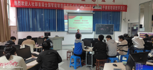 为深入学习领会党的二十大精神,奋力谱写新时代中国特色社会主义育人新篇章,将二十大精神深植学生心中,唤醒每位学生成为二十大精神的广播员、宣讲员。推进新时代文明实践站营造“踔厉奋发、勇毅前行”的奋进氛围,机电工程系党支部开展“我是二十大宣讲员”主题宣讲活动。 2022年11月23日下午16:00,机电工程系龚春芬同志在数控中心机房以《党的二十大报告辅导读本》为蓝本,以“青春逢盛会,奋斗正当时”为主题的党课宣讲会。机电工程系21数控3班全体学生参加。