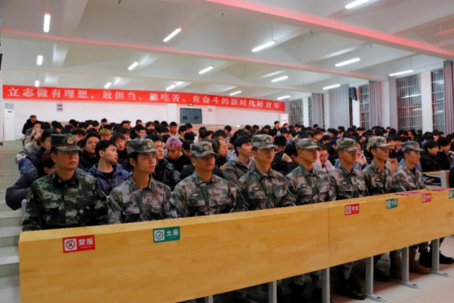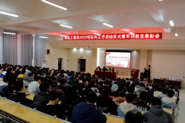 为积极响应国家“强国强军”号召,鼓励当代青年积极投身军营,切实做好征兵宣传工作,解读征兵政策,为2023届毕业生保障高质量就业拓宽渠道,扎实推进就业“1+N”系列活动走实走深。 机电工程系于12月1日19:00在志学楼504开展“铁血铸军魂 青春强国梦”为主题的毕业班征兵宣传讲座暨军训教官表彰活动。学工处、武装部部长郑海林、系学工副主任晏慧敏、学工处·武装部邓丽钱老师、系学管员张敏玲以及系教官大队成员、2023届毕业班490余人参加。