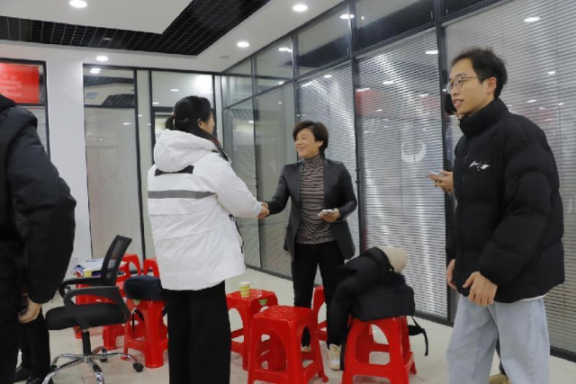 当天,就业创业学院处长万颖莅临现场指导,走访企业招聘直播现场,认真了解企业的用人需求、投递简历的数量、毕业生在线观看情况、薪酬制度和发展空间,并走访每间直播观看教室,深入一线关心疫情环境下毕业生的求职就业情况。