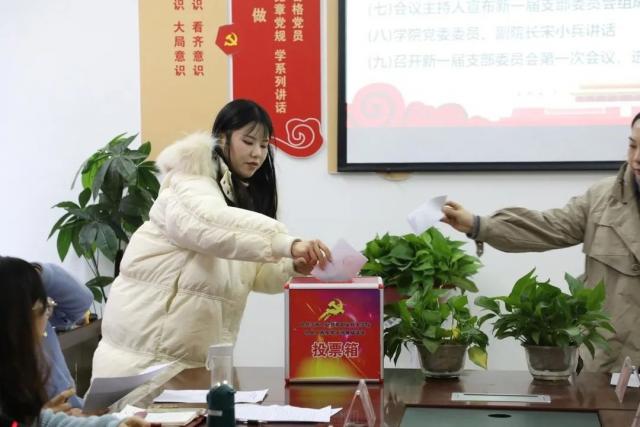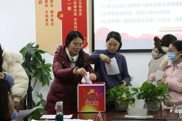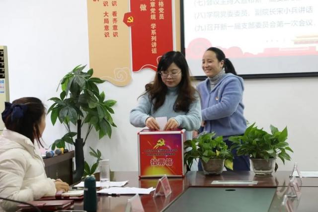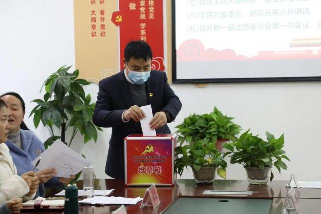 学院党委委员、副院长宋小兵对本次换届选举党员大会作出了几点要求与期望:一是要坚持政治统领,持续加强支部建设,把基层党组织建设成为有效实现党的领导的坚强战斗堡垒;二是全体党员发挥先锋模范作用,将责任扛在肩上、抓在手上,主动啃“硬骨头”,在政治立场、政治方向、政治原则、政治道路上同党中央保持高度一致;三是踔厉奋发,笃行不怠,赓续前向,奋楫争先,认真按照支部工作报告中的工作谋划,严格落实各项工作;四是要始终把“以赛促教、以赛促学、以赛促改、以赛促强”作为提升教育教学质量的重要抓手,不断深化人才培养改革,提升人才培养质量,以赛事引领学校办学水平上新台阶。 会后,新一届支部委员会举行第一次支委会,选举产生了支部书记、支部副书记,并对支委进行分工。马龙凤同志担任支部书记,晏慧敏同志担任支部副书记,刘耀元同志担任纪检委员,周金莲同志担任文艺委员,谢晖同志担任统战委员,潘桂根同志担任宣传委员,徐悦欣同志担任组织委员,同时将选举结果上报学院党委。