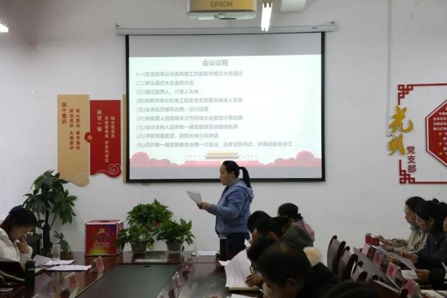 组织委员徐悦欣同志通报了到会党员人数,到会人数符合党章和基层党组织换届选举的相应规定,支部换届选举会议正式开始。
