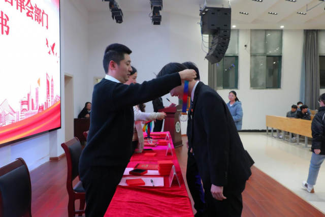 各部门负责老师为第十八届的干部们颁发纪念纪念奖牌和荣誉证书。并对即将毕业的学生干部寄语:在就业岗位上也要时刻牢记出彩机电人的优良品质,取得辉煌成绩。