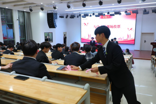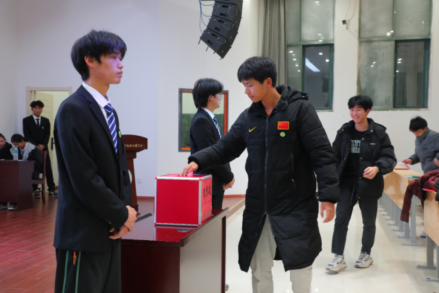 投票环节秉承着“公正,公开,公平”的原则。投票统计结束后由张敏玲老师公布自律会会长候选人的票情况和当选人名单。