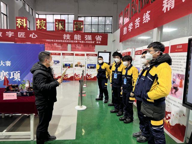 随后,2022年江西省职业院校技能大赛机器人系统集成技能赛项裁判、参赛教师及学生纷纷在智能制造中心报到并参观熟悉赛场,现场氛围热烈。