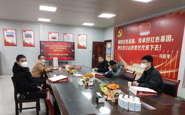机器人系统集成赛项赛前裁判会 系主任马龙凤、系部教师表示,作为赛项组织方,一方面要在比赛过程中要一如既往做好防疫、服务工作,把安全贯穿比赛前中后,安全意识牢记于心。另一方面是要高标准严要求,营造公平、公正、公开的竞赛氛围,确保赛项顺利开展。 赛前筹备准备充分,调动了参赛院校以赛促学的热情,是提高参赛选手能力素质的重要举措,为承办职业技能大赛“机器人系统集成”赛项取得圆满成功奠定了基础,预祝2022年江西省职业院校技能大赛取得圆满成功。