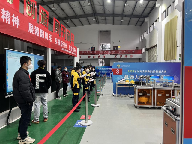 人人成才,技兴江西 经过两天紧张激烈的竞赛,2022年江西省职业院校技能大赛机器人系统集成技能赛项于2022年12月28日下午圆满结束。来自全省的9支代表队18名选手以最饱满的精神和最佳的竞技状态赛出水平、赛出风格、赛出成绩,全面展现技能风采,彰显新时代的“工匠精神”。