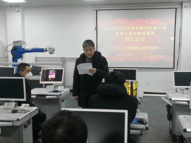 为搭建技能人才展示精湛技能、互相切磋技艺的平台,充分展示江西省职业技能成就和水平,机电工程系全力筹备的江西省职业院校技能大赛“机器人系统集成”赛项,于12月26-28日在智能制造中心举行,该赛项检验高职院校装备制造类专业复合型技术技能人才培养成效,全面展现南昌市装备制造(工业机器人系统集成方向)的职业技能水平。