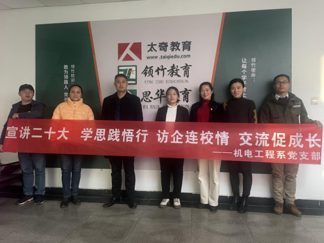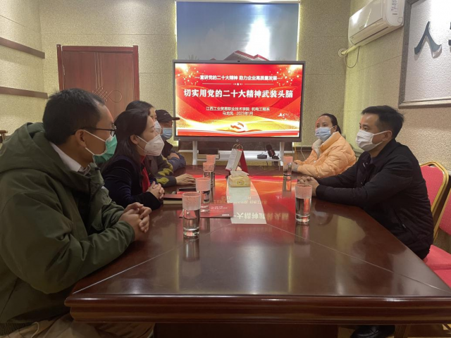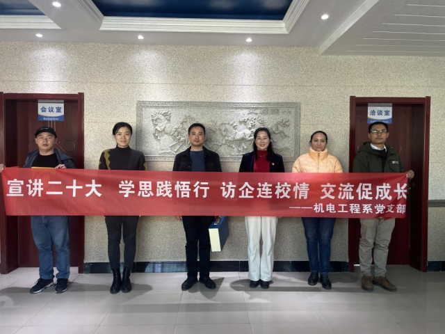 访企连校情交流促成长 为深入贯彻习近平新时代中国特色社会主义思想、党的二十大精神,联络凝聚校友、服务校友和推动校友站建设工作。将党的二十大精神宣讲武装头脑,助力校友企业高质量发展。2023年1月9日,机电工程系党支部书记马龙凤带领党员教师晏慧敏、胡晓丽、段建雄、陈磊、张惠超等一行前往新建区、青山湖区、走访调研校友企业。