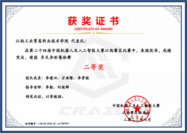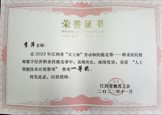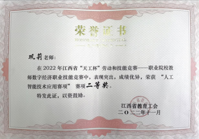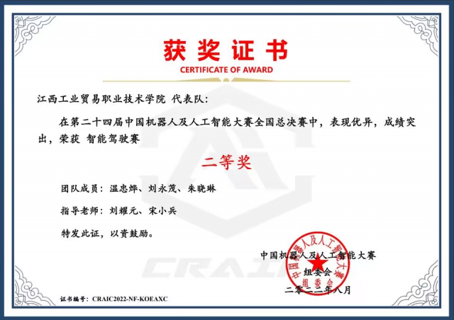 人工智能研究、开发用于模拟、延伸和扩展人的智能的理论、方法、技术及应用系统的科学,是数学、系统学、控制学、计算机科学、认知科学等学科交叉形成的综合性学科。当前,人工智能正与工业、商业、金融业等行业全面融合,推动经济形态不断演变,带动社会经济实体持续增长。第一次工业革命,让机器替代了手工体力劳动,但创造了很多就业机会;未来的人工智能革命也一样,可能会出现很多替代简单脑力劳动的现象,但也会创造出来更多新的机会。 我系人工智能技术应用专业于2021年新增专业招收第一批高职生。人工智能技术应用专业为优质院校智能制造专业群特色专业,培养掌握人工智能基础专业理论知识、应用技术,具备人工智能技术应用开发、系统管理与维护等能力,从事机器视觉应用及开发、人工智能相关的应用开发、AI产品经理、售前售后技术支持等岗位工作的高素质技术技能人才。 各项荣誉 学院于2020年9月份着眼于智能制造专业群建设融合人工智能领域发展,开设人工智能技术应用(机器视觉方向)专业。在2021年全国职业院校技能大赛高职组“机器视觉系统应用”比赛中取得团体二等奖,获奖徐学荣、董争超获得2022年专升本考试江西省“未来工匠培育计划”中“交通强省班”的报考资格,并考入华东交通大学进行深造学习。2021年江西省职业院校技能大赛“机器视觉系统应用”大赛荣获二等奖1项、三等奖1项;2021年12月举行的江西省“振兴杯”首届人工智能应用技术职业技能赛中,我院多名教师和学生获得奖项,学院还获得优秀组织奖;2022年江西省“天工杯”职业院校教师数字经济赛中荣获“人工智能技术应用”赛项一等奖1项、二等奖1项;2022年参加第二十四届中国机器人及人工智能大赛江西赛区“智能驾驶赛”比赛中荣获二等奖,“多足异形集体舞”比赛中荣获二等奖。