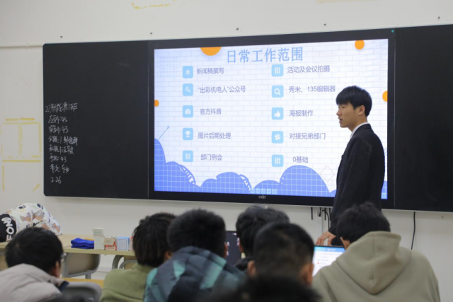 每一位学长学姐都是有备而来的,听他们的部门介绍,精彩万分! 看他们的精神面貌,神采奕奕!面对各位同学的提问,温柔体贴的学长学姐们,毫不畏惧,认真冷静,为你答疑解惑,形成一道道靓丽的风景线,让你对各部门的了解噌噌噌往上涨!在这总有你看对眼的部门,还在等什么,风里雨里,机电系学生会、自律会等你,快来寻找你心仪的部门,开启一场双向奔赴叭。
