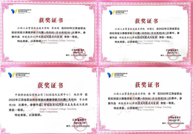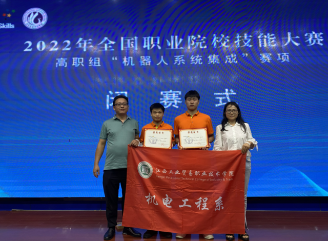 我院工业机器人技术专业获批“教育部全国百所工业机器人应用人才培养中心”,为优质院校智能制造专业群龙头专业,是江西省首批职业院校创新教学团队、“1+X”工业机器人集成应用职业技能等级证书资格培训专业。培养从事大型智能产线设备、工业机器人的安装、编程、调试、维修、运行和管理等岗位的高素质技术技能型人才。同时连续五年承办江西省职业院校技能大赛“工业机器人系统集成”赛项获得了省教育厅的高度好评,已成为江西省工业机器人专业培养的“黄埔军校”。 我的各项荣誉 江西工业贸易职业技术学院于2009年开始在机电一体化专业中设置机器人方向,并在全国竞赛中取得多个一等奖好成绩。于2016年开始招收工业机器人技术专业,是江西省第一批招收此专业的高校;2017年获批教育部全国一百所工业机器人应用人才培养中心立项;2018年、2019年参加全国工业机器人相关竞赛获得三等奖、2020年获得全国试点赛机器人系统集成项目获二等奖,全国第六名,2021年代表江西省参加全国职业院校大赛“机器人系统集成”比赛中荣获团体二等奖,全国第四名的好成绩,2022年代表江西省参加全国职业院校大赛“机器人系统集成”比赛中荣获团体二等奖;2021年工业机器人专业教师参加江西省职业院校技能大赛教学能力比赛荣获一等奖、全国职业院校技能大赛教学能力比赛荣获二等奖,2022年工业机器人专业教师参加江西省职业院校技能大赛教学能力比赛荣获一等奖、全国职业院校技能大赛教学能力比赛荣获一等奖。