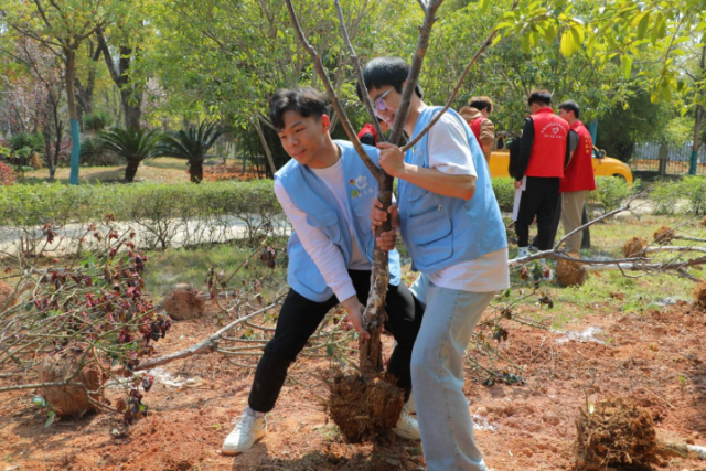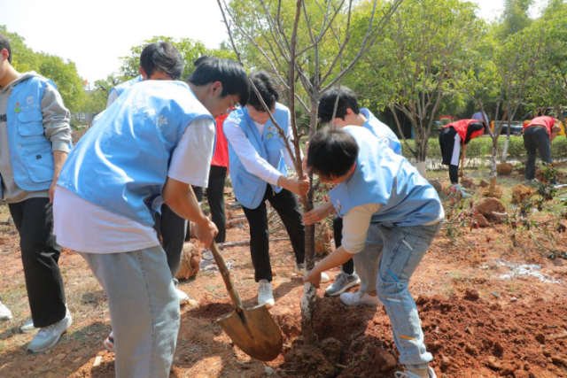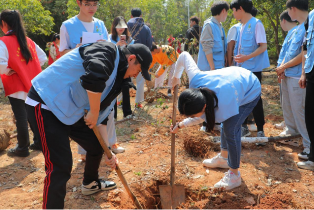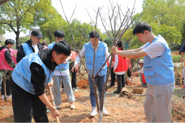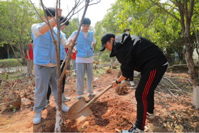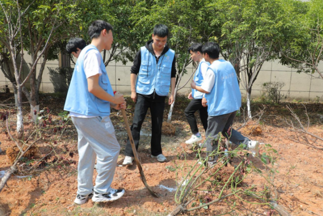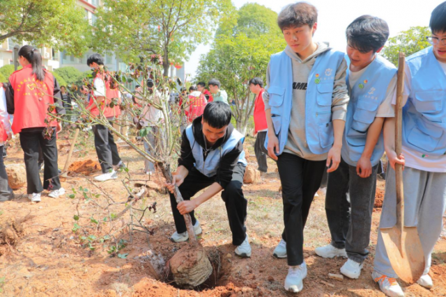 阳春三月,繁花似锦。在这万物竞相生长的季节,机电工程系的志愿服务活动也开展得如火如荼。党的二十大报告提出:推动绿色发展、促进人与自然和谐共生,牢固树立和践行绿水青山就是金山银山的理念,站在人与自然和谐共生的高度谋划发展。 在第45个“3·12”植树节来临之际,为进一步弘扬雷锋精神,以实际行动践行植绿、护绿、爱绿的文明新风,营造全民参与植树的良好氛围。由学院团委牵头,机电工程系组织志愿者于2023年3月10日在学院求是楼右前方空地开展“植树护绿学雷锋 志愿服务青春行——机电工程系植树护林志愿服务活动”。 参与本次活动的老师有系副主任晏慧敏、系学管员张敏玲、系团总支书记马星宇。