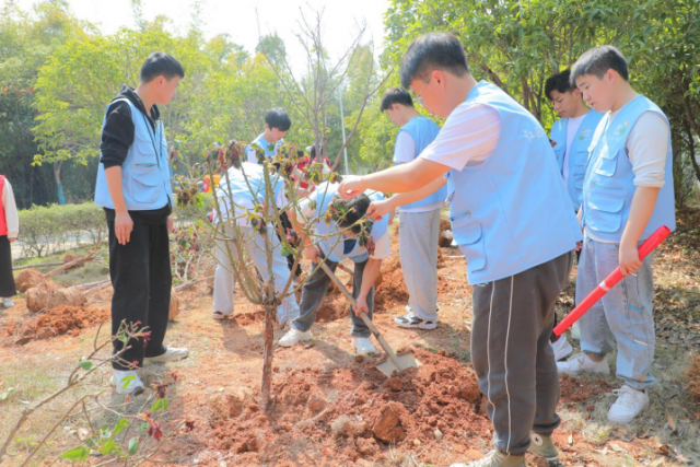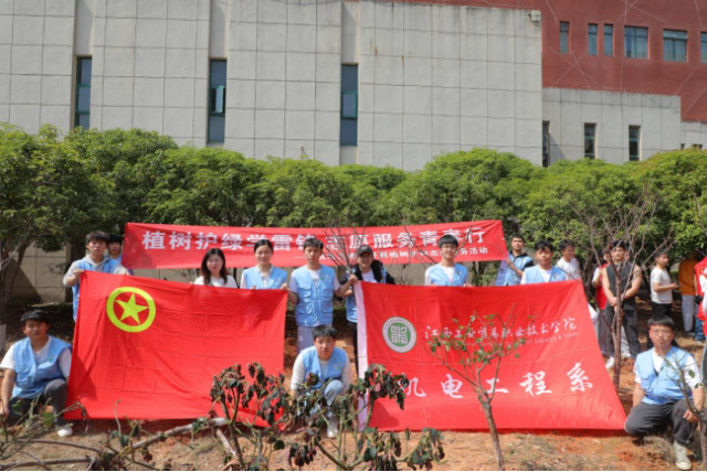 弘扬雷锋精神,培育时代新人 本次学雷锋志愿活动与植树节活动的有机结合,既弘扬了雷锋精神、让雷锋精神深入人心,又增强了机电学子“植绿、爱绿、护绿”的生态文明意识。学习党的二十大及雷锋精神,传承文明火炬,培育时代新人。 今后机电学子将继续践行绿色环保理念,积极投身生态文明建设,用实际行动践行绿水青山就是金山银山理念,让绿水青山底色更亮、金山银山成色更足