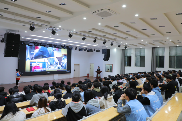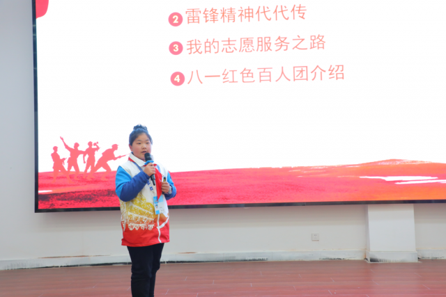 南昌八一起义纪念馆红色故事百人团少年团成员、南昌八一起义纪念馆“八一守护人”童雨萱小朋友。分享了她5岁以来走过的志愿服务路程。让台下的同学们不仅了解到新生一代是如何传颂八一精神、践行雷锋精神,还学到了如何把志愿服务精神融入到学习生活当中,让号召志愿服务的声音在机电工程系传唱。 微光可成炬大爱映苍穹