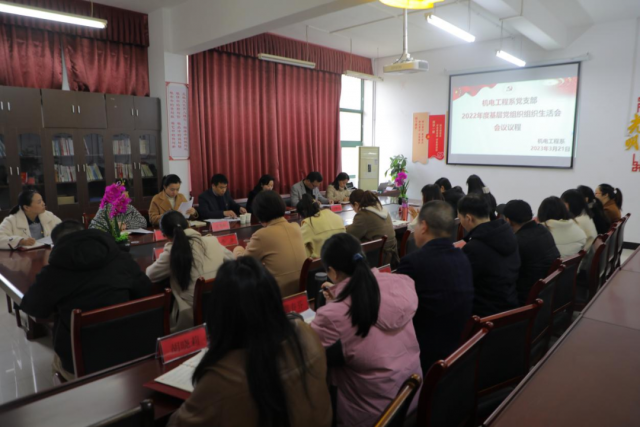 为深入学习贯彻党的二十大精神,坚持不懈用习近平新时代中国特色社会主义思想凝心铸魂,根据省委组织部《关于转发<中共中央组织部关于召开2022年度基层党组织组织生活会和开展民主评议党员的通知>的通知》精神和学院党委要求,机电工程系于3月21日下午14:10召开2022年度基层党组织生活会。 学院党委委员、副院长宋小兵、纪检监审室龚庆文、机电工程系全体党员参与此次会议,会议由支部书记马龙凤主持。
