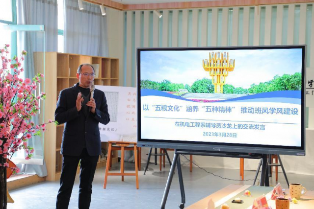 解读五粮文化感受文化魅力 粮食文化产业研究发展中心主任李运楼从发现美讲好五粮文化、涵养美弘扬五种精神、展示美建好班风学风三个角度出发,详细解读了以“五粮文化”涵养“五种精神” 推动班风学风建设的主题交流分享。