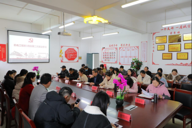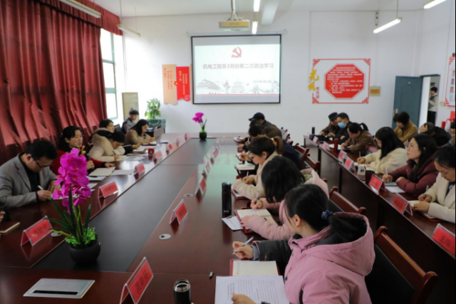 为深入学习习近平总书记在学习贯彻党的二十大精神研讨班开班式上的重要讲话精神,进一步加强师德师风建设,强化教师爱与责任的意识,全面提升我校教师师德师风修养和建设水平,抓好教师的政治学习教育。机电工程系于2023年3月24日下午2:10在厚泽楼324开展机电工程系3月份第二次政治学习,会议由机电工程系党支部书记、系主任马龙凤主持,机电工程系全体教职工参与此会。
