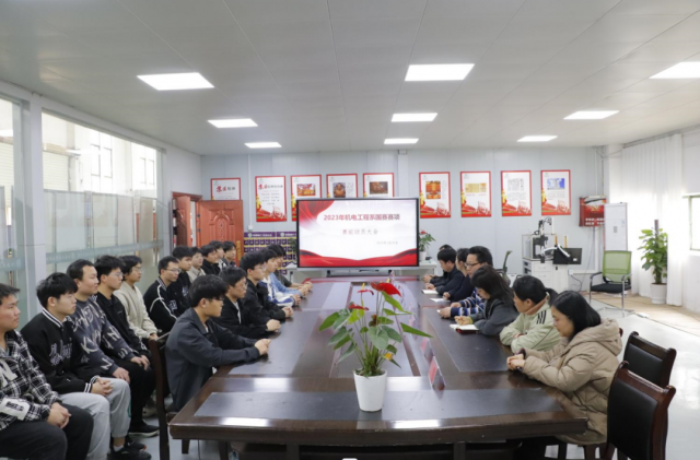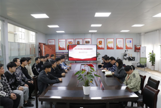 春风吹战鼓擂,十年磨一剑,六月试锋芒。为进一步激发机电系师生国赛竞赛队学生的训练热情,凝聚机电师生齐心打造国家级、省级标志性成果的思想共识。3月30日中午12:40在智能制造中心103召开迎战2023年我系三个国赛项目能竞赛赛前动员大会,号召全体竞赛队师生主动作为,心往一起想,劲往一处使,瞄准目标,全力冲刺,有效激发了队伍整体活力,凝聚了队员意志。参加此次动员大会的有机电工程系党支部书记、系主任马龙凤,机电工程系分管教学副主任刘耀元、教研室主任胡晓莉、陈磊、段建雄,教学管理员王萍老师、机器人系统集成项目指导教师刘冬梅、机电一体化赛项指导教师唐宇和各赛项目的学生,会议由教学副主任刘耀元主持。