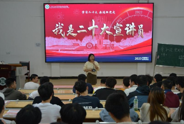 为进一步深入学习领会党的二十大精神,奋力谱写新时代中国特色社会主义育人新篇章,将二十大精神深植学生心中,唤醒每位学生成为二十大精神的广播员、宣讲员。推进新时代文明实践站营造“踔厉奋发、勇毅前行”的奋进氛围,机电工程系党支部开展“我是二十大宣讲员”主题宣讲暨新时代文明实践活动。 2023年4月12日,江西工贸学院(江西工贸高级技工学校)机电工程系党支部党员张惠超在志学楼214,为22级机电一体化1班和22级机电一体化2班全体学生开展《走好中国式现代化之路》形势与政策讲座。