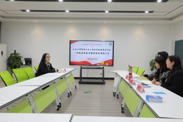 专场招聘会后,机电工程系在厚泽楼323开展智能制造类岗位招聘企业专场座谈会。参加座谈会的企业有江西君亿园科技有限公司、江西金达莱环保股份有限公司、江西浪汛月凌科技发展有限公司、全兴工业(江西)有限公司、益海嘉里(南昌)粮食食品有限公司、江西省映尚科技有限公司。