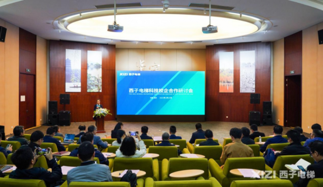 (研讨会现场) 研讨会分三段进行,第一阶段由企业方介绍企业相关信息,先进行简短欢迎仪式后由商务李总监对西子电梯成长40多年深耕电梯行业,要做百年电梯企业的经营理念、企业生态、人才需求、产品核心竞争力等作介绍;技术总监金军对西子电梯科技企业的智能制造场景、应用技术、创新领域等做了详细说明;再由浙江工商管理大学丛国栋教授讲授《基于现场力视角的高校教育创新思考》、西子电梯科技陈艺之女士分享《电梯企业典型岗位介绍》、西子电梯科技丁亚琴女士分享《西子智能装备产业学院(筹)介绍》思考。
