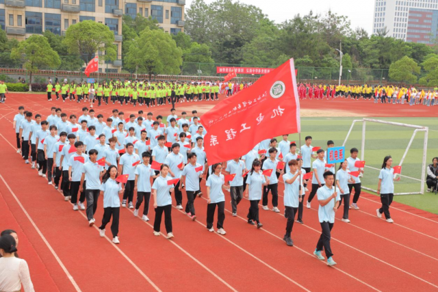 运动员代表全体运动员宣誓 方阵入场 伴随着激昂的运动员进行曲,各系代表队依次入场,迎着朝阳步伐坚定,精神饱满挥舞青春,彰显属于工贸学子的热情,国旗、校徽、会徽,灵魂体现精神缩影,它体现了工贸学子的竞技风采,它体现了更高、更快、更强的奥林匹克精神