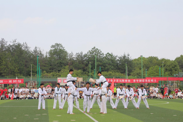 社会体育系表演跆拳道 不坠凌云志,健儿当自强,机电学子肩负责任与希望,他们团结向上,挑战自我,充分实行明德敏行技高志远的校训