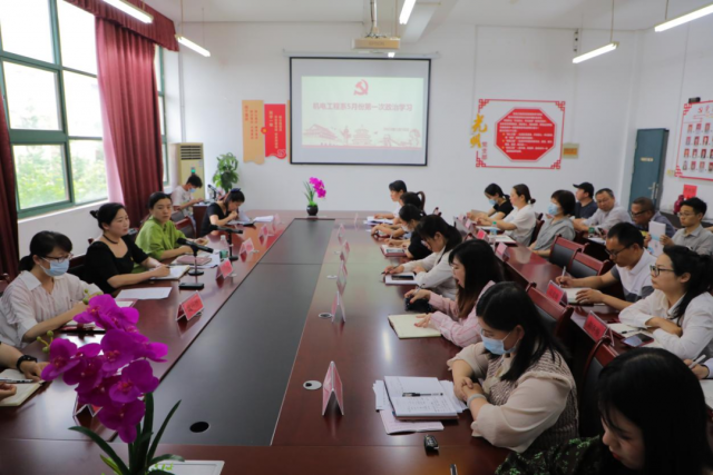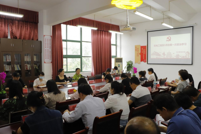 为深入学习贯彻习近平新时代中国特色社会主义思想主题教育,让科学谋划、精心组织,强化理论学习和运用,取得实实在在的成效,为奋进新征程、建功新时代提供坚强有力的政治引领和政治保障。5月16日下午,机电工程系召开5月份第一次政治学习,机电工程系党支部书记、主任马龙凤主持会议,机电工程系全体教职工参与此会。