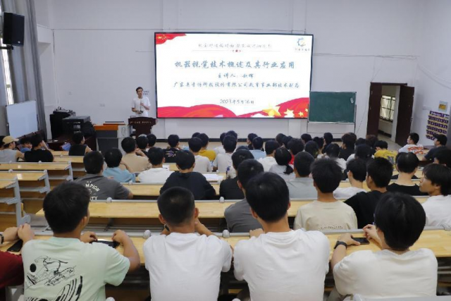 为帮助人工智能技术及工业机器人技术等专业的同学们更快了解市场发展动态、提前了解企业人才需求,为以后的工作打好坚实的基础。2023年5月16日,机电工程系特邀广东奥普特科技股份有限公司教育产品总监赵辉为机电学子们分享当前机器视觉行业发展现状以及技能提升的相关技巧。 在讲座中,赵总监结合自身在机器视觉行业积累的多年经验,对机器视觉行业做出了深刻的剖析,并结合市场行业现状,对机器视觉行业趋势和企业用人标准进行了简单的分析。纯干货的讲座引起了同学们很大的热情和浓厚的兴趣,同学们纷纷就自己关心的问题与赵总进行了积极的交流,使现场学子受益匪浅。 机电学子通过这次企业大咖进校园活动,深度接触行业精英,与社会前沿机器视觉技术和先进理念接轨,不仅了解到机器视觉行业的良好发展形势,也更加明确了自己在机械行业的奋斗方向。 每一次的企业大咖进校园都会带来不一样的体验,借此机会,学子们可以了解到行业现状发展,拓宽了学子们的视野。