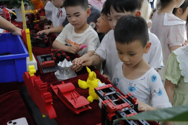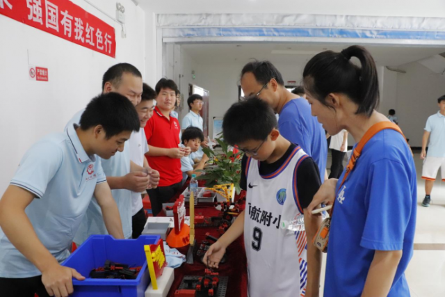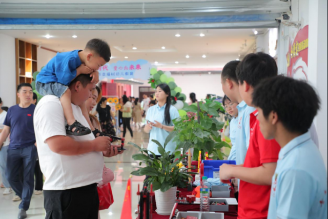 在此次志愿服务活动中,机电工程系展示出了智能机器人作品、红色3d数控打印作品及机械创新大赛作品,这些作品吸引着家长和小朋友们的目光,竞赛队成员为前来观看的家长和小朋友们答疑解惑,对机器人模型进行了细致的讲解。