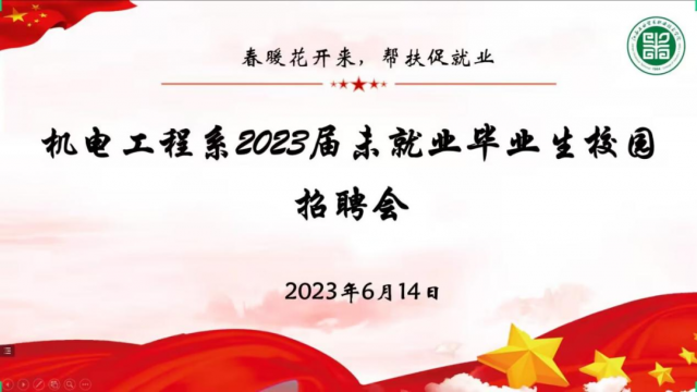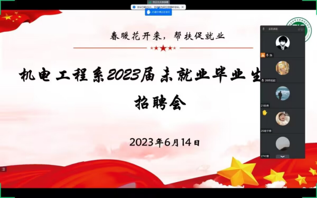 为贯彻落实党中央、国务院“稳就业”“保就业”决策部署,为切实做好学校2023届毕业生就业工作,进一步拓宽就业渠道,搭建用人单位和毕业生之间的双向选择的平台,积极探索“不见面”就业保障长效常态工作机制,切实做到学校2023届毕业生就业需求与用人单位岗位招聘需求精准对接,机电工程系于2023年6月14日举办此次2023年“就业向未来,建功新时代”大型线上招聘会。