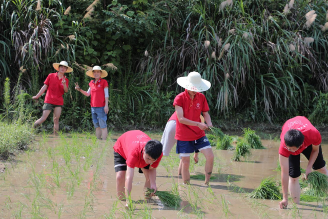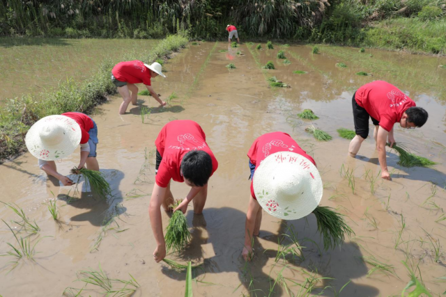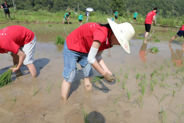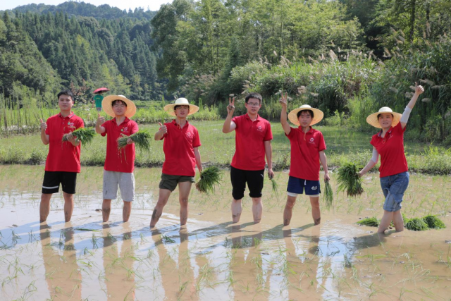 助农插秧促振兴秧苗绿映我先行 “手把秧苗插满田,低头便见水中天。六根清净方为道,退步原来是向前。”下午,机电学子顶着烈日,在村民陪同下,戴着草帽,撸起衣袖,卷起裤脚,下到农田中体验插秧。