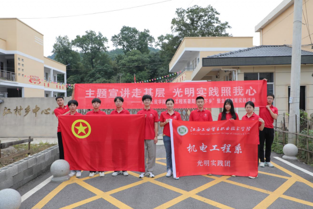 为深入学习贯彻习近平新时代中国特色社会主义思想主题教育,全面贯彻落实党的二十大报告中对建设农业强国作出的重要部署;勉励广大青年志存高远、脚踏实地,把课堂学习和乡村实践紧密结合起来,厚植爱农情怀,练就兴农本领,在乡村振兴的大舞台上建功立业。7月5日,机电工程系光明实践团从工贸学院出发前往景德镇市浮梁县江村乡开展暑期“三下乡”实践活动。