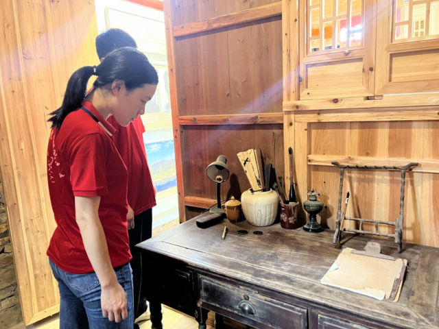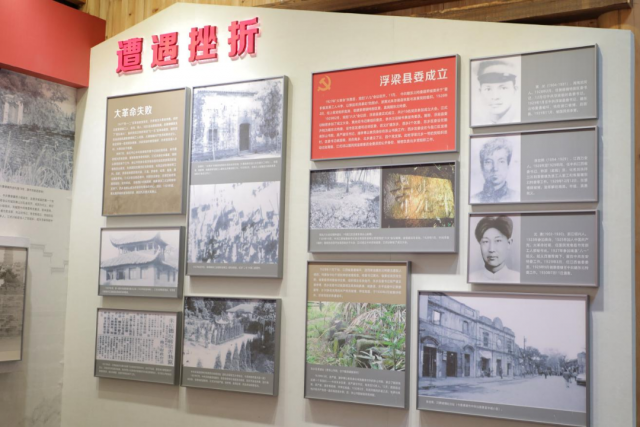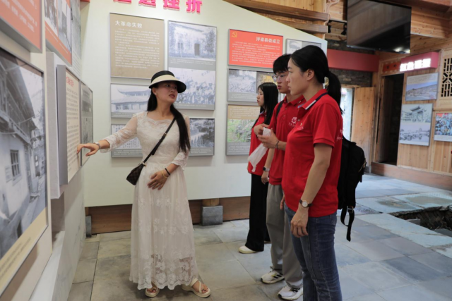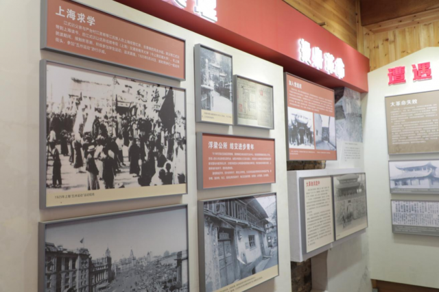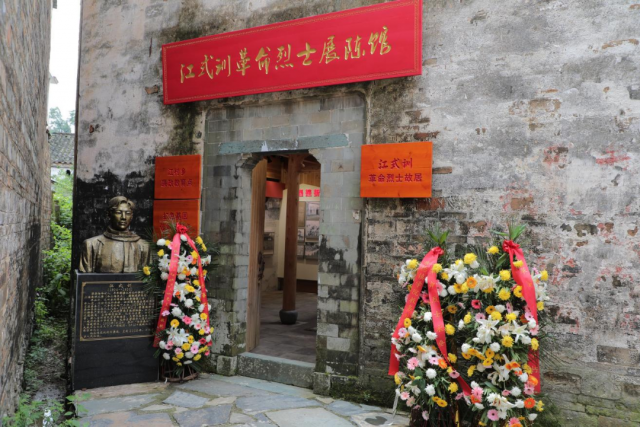 江式训革命烈士展陈馆按照江式训故居一比一建造。在讲解员的引领下,从“诰峰童年、追求真理、投身革命、遭受挫折、诰峰脱险、红色谍报、英勇就义和寻找烈士”等八个方面了解江式训革命烈士英勇事迹。一句句介绍,一张张照片,展现出浮北革命第一烈士的信仰坚定、不怕牺牲、敢于担当、默默奉献的光辉形象。