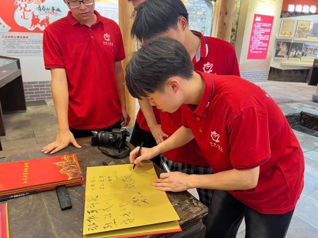 在离开之际,实践团成员们怀着无比崇敬的心情在展陈馆留言处写下“向江式训烈士致敬!”“缅怀先烈,永垂不朽”等敬重之语。对于追寻革命先辈足迹、重温党史、不忘初心,我们新时代团员青年要在缅怀先烈中立壮志、铸英魂,赓续革命先烈精神血脉,同时新时代青年们应当学习和弘扬革命者们为振兴中华而奋勇向前的崇高精神,为构筑新时代中国精神、中国力量注入蓬勃的青春力量。