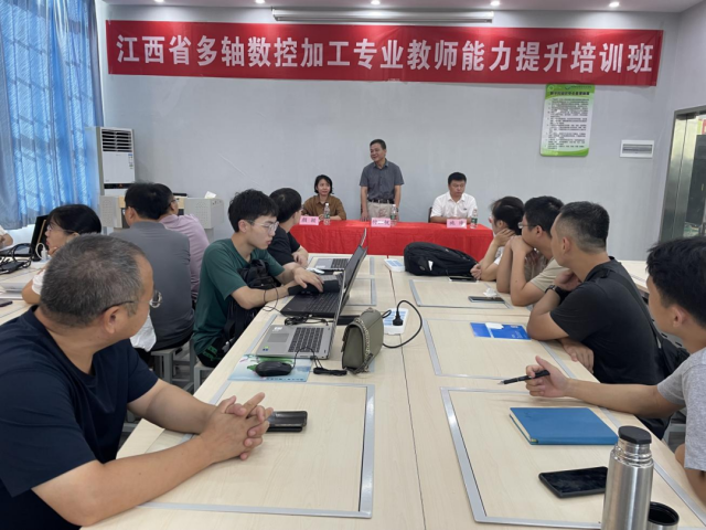 为深入贯彻落实习近平总书记关于智能制造发展的重要指示精神,进一步提升高职院校相关专业群教师多轴加工课程教学能力、专业实践能力,培养多轴联动加工的专业技能人才。2023年8月20日至29日,机电工程系数控技术专业教师黄勇刚、魏丹丹和学生向琪、邵文文前往江西制造学院参加为期十天的五轴数控加工技术培训班,培训班邀请武汉华中数控有限公司专家进行授课。