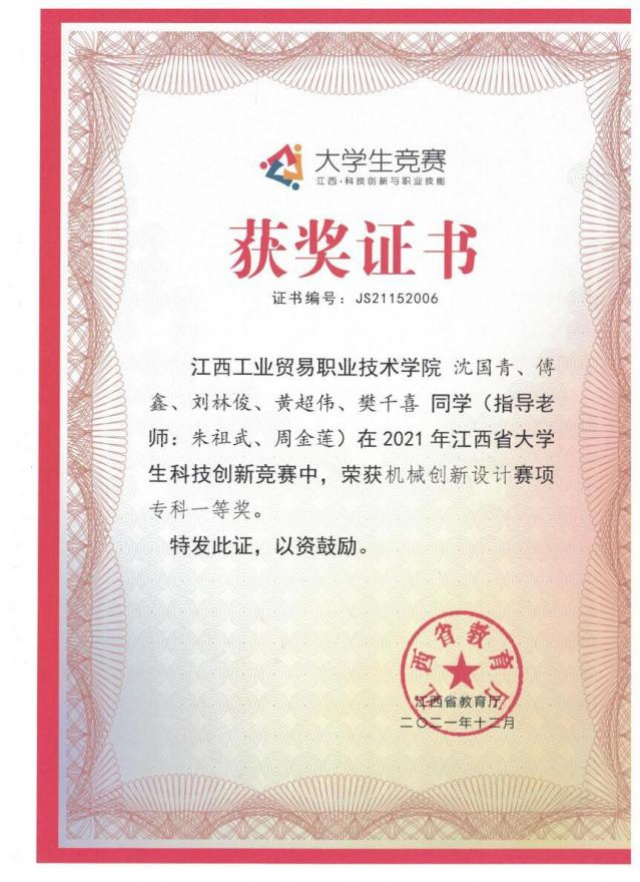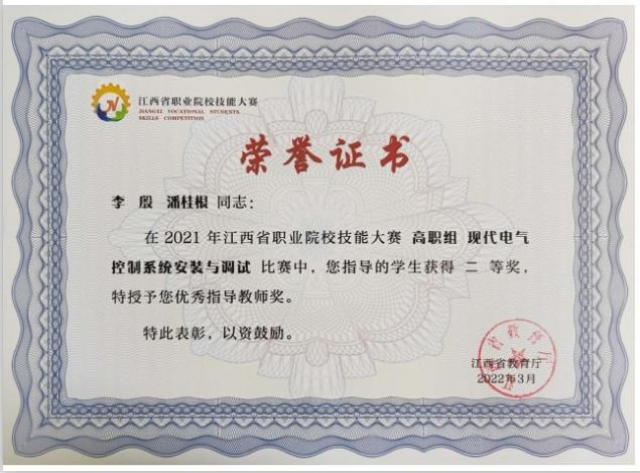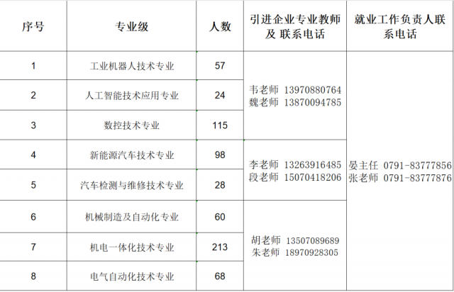 尊敬的用人单位: 衷心感谢贵单位长期以来对江西工业贸易职业技术学院机电工程系毕业生就业工作的关心与支持! 机电工程系创建于2003年,为“省直青年文明号”单位。现有专兼职教师36人,其中高级职称16人(教授7人、副教授9人),中级职称17人,“双师型”教师20人,硕士研究生教师16人;建有省级首批职业院校工业机器人技术专业教学创新团队1个,全国粮食行业拔尖人才1人,;江西省首席技师2人,江西省技术能手2人,江西省能工巧匠2人;教师教学团队申报项目获批国家粮食产业技术创新中心1个。实训教学设备数量充足、设备先进,获批中央财政支持实训基地2个及江西省创新发展行动计划智能制造生产性实训基地1个,申报省级工业机器人技术群教学资源库1项;获批工业和信息化部人才交流中心与北京华航唯实机器人科技股份有限公司、浪潮工业互联网股份有限公司联合建设的工业互联网产业人才基地;获批申报全国高等学校“机器人+”产教融合基地首批培育建设单位项目。 工业机器人技术专业群顺利入选“江西省A档高水平职业院校建设单位”的省级双高专业群。 机电工程系围绕智能制造专业群开设了工业机器人技术专业、机电一体化技术、数控技术专业、机械制造与自动化、汽车检测与维修技术、新能源汽车技术、电气自动化技术、人工智能技术应用等八大专业。 机电工程系师生积极参加国家级、省级比赛,屡获佳绩。近两年参加比赛的教师谢晖、刘耀元、李洪娟获得全国职业院校教学能力大赛一等奖;谢晖、刘耀元、韦娜获得全国职业院校教学能力大赛二等奖;江西省职业院校技能大赛教学能力比赛获一等奖2项、二等奖1项;潘桂根同志被授予“能工巧匠”荣誉称号;学生参加全国职业院校职业技能大赛荣获二等奖3项,全国职业院校职业技能大赛三等奖2项;省级一等奖4项、二等奖13项、三等奖6项,创系部新高;技工院校创新创业竞赛获一等奖(全国第3名)1项,省赛一等奖1项、三等奖1项;“建行杯”第七届“互联网+”创新创业大赛省赛银奖1项。2013级机电一体化技术3班刘建峰荣获2022年度全国高校毕业生“基层就业卓越奖”,21机电一体化技术2班史和东作为代表参加共青团江西省第十七次代表大会,参评2022年度省直机关“一先两优”评选获“优秀团员青年”荣誉称号等。
