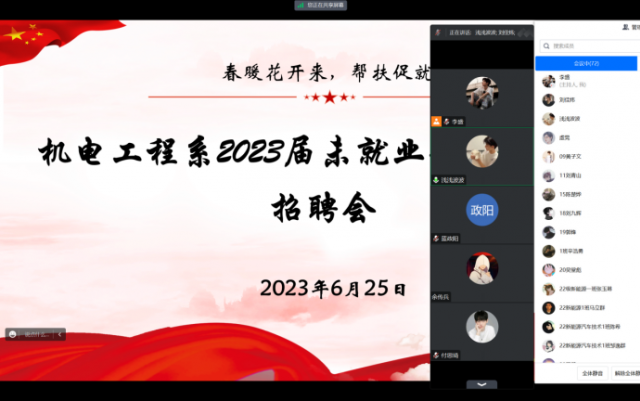 为推动学习贯彻习近平新时代中国特色社会主义思想主题教育走深走实,落实党中央、国务院关于做好高校毕业生就业工作的决策部署,切实加大毕业生就业岗位供给,江西工业贸易职业技术学院机电工程系于6月25日下午2点,在线上平台腾讯会议举办“你来我网,共赢职场”大型线上校园招聘会,保障毕业生稳定就业。机电工程系系主任马龙风出席本次会议。