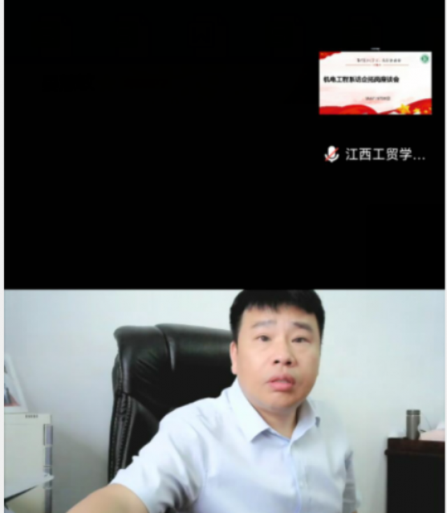 为贯彻落实教育部“高校书记校长访企拓岗促就业”专项行动,进一步拓展毕业生就业渠道。6月20日下午两点,江西工业贸易职业技术学院机电工程系与慈溪广联汽车配件有限公司、浙江天煌科技实业有限公司、杭州海康威视电子有限公司、南昌海大生物科技有限公司、杭州迈仕杰汽车服务有限公司、南昌市光辉电力科技有限公司等6家企业联合开展“访企拓岗”线上交流会。江西工业贸易职业技术学院副院长宋小兵,机电工程系系主任马龙凤、副主任晏慧敏、就业管理员张惠超老师和各企业方负责人参加会议。