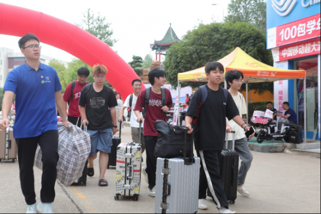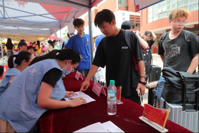 支部提前谋划,统筹安排,制定了详细周密的迎新工作方案。迎新当天,支部党员、志愿者们身穿蓝色系服,热情投身到志愿服务中,帮助新生搬运行李,引导新生按照报到流程安全入校,办理入学手续等。纵使烈日炎炎,志愿者们仍积极做好服务工作,树党员旗帜,纵使身心疲惫、大汗淋漓,但仍以饱满昂扬的精神,扎实做好迎新工作。