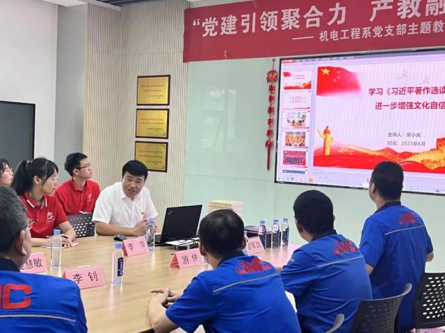 江西工贸学院党委委员、副院长宋小兵同志结合学习贯彻习近平新时代中国特色社会主义思想主题教育,为全体党员同志讲授一堂微党课:学习《习近平著作选读》进一步增强文化自信。