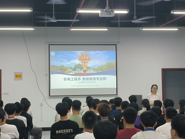 为帮助2023级新生更好地融入大学校园生活,深入了解所学专业的现状和未来发展前景,进而合理规划大学生活。2023年9月20日至27日,工业机器人教研室黄勇刚老师、刘冬梅老师、李萍老师、韦娜老师、周金莲老师,分别在昌北校区、嘉言校区为2023级工业机器人技术专业、人工智能技术应用专业、数控技术专业全体新生开展了一次专业介绍活动。