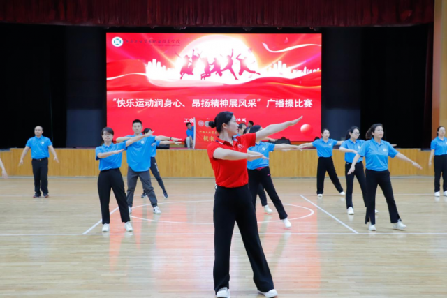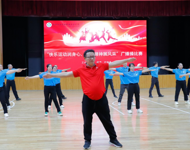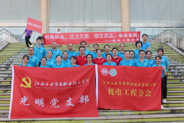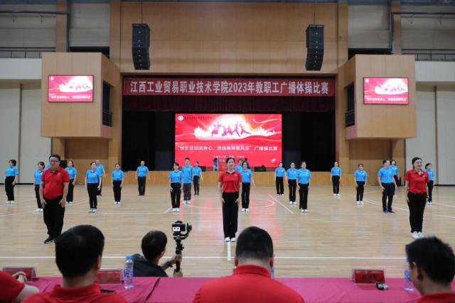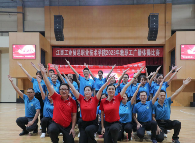 江西工业贸易职业技术学院在2023年10月17日下午举行教职工广播体操比赛,全院共有10支队伍参赛,机电工程系分会获得了三等奖的好成绩,以奋勇直前,斗志昂扬的精神展机电风采。 比赛中,老师们着装统一,精神抖擞,步伐整齐。他们紧跟节奏,时而挥臂,时而踢腿,时而跳跃,动作娴熟,张弛有度,将广播体操明快流畅的感觉表现得淋漓尽致。赛场上洋溢着青春的气息,飞扬着动人的神采。