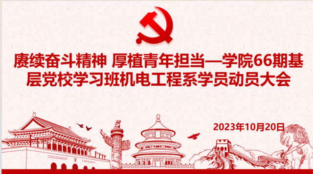 为深入贯彻落实习近平总书记关于青年工作的重要思想,加强对入党积极分子的培养和教育,严把党员队伍的“入口关”,为党输送新鲜血液,10月20日,机电工程系在厚泽楼324召开学院66期基层党校学习班动员会。参与此次会议的有机电工程系组织员徐悦欣、预备党员史和东及学院66期基层党校学习班机电工程系学员。