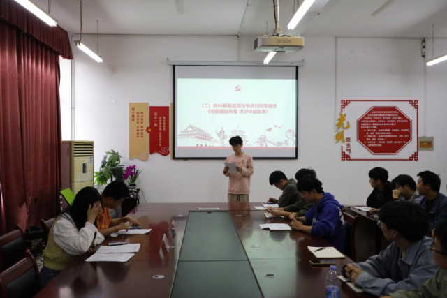 由第66期基层党学员刘阿军传达学习《创新国际传播 讲好中国故事》,深刻把握“第二个结合”是在新形势下加强和改进国际传播工作的关键。我们在国际传播实践中深切感受到,坚守中华文化立场,提炼展示中华文明的精神标识和文化精髓,是加快构建中国话语和中国叙事体系的重要方式。 提高思想觉悟端正入党动机