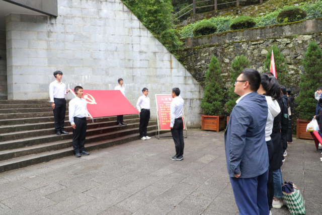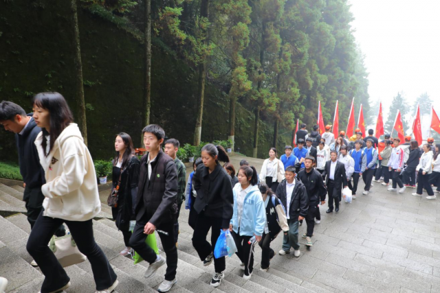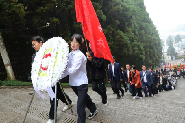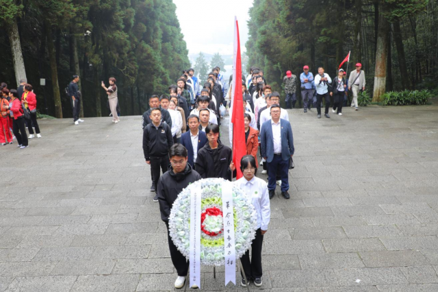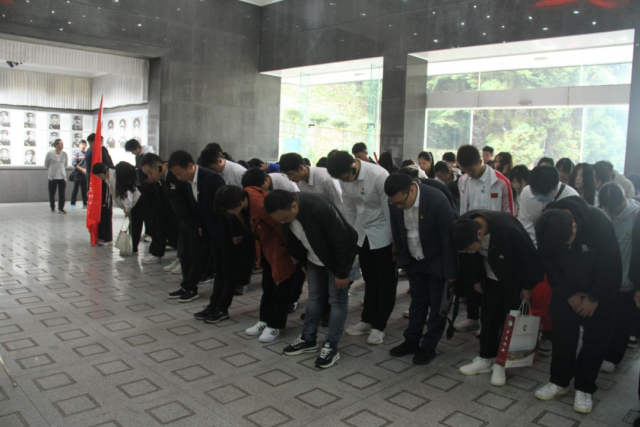 缅怀革命先烈牢记革命历史 青山处处埋忠骨,红旗猎猎传英魂。在庄严肃穆的井冈山革命烈士陵园中,全体学员在院领导的带领下,向长眠于此的先辈们敬献花圈,鞠躬默哀,缅怀他们的丰功伟绩。