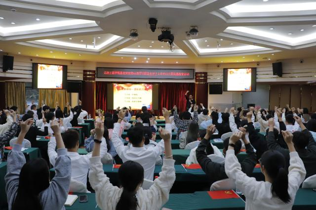 紧接着,全体学员在领导的带领下面向党旗,重温入党誓词,以铿锵有力的宣誓声,表达不忘初心、牢记使命的信念和决心。