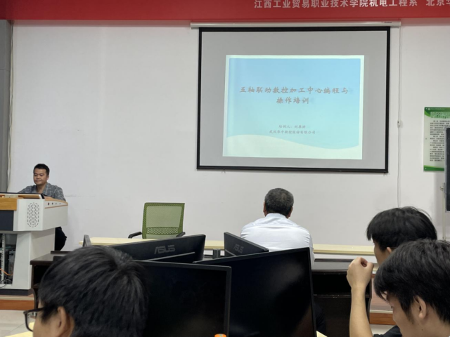 为深入贯彻落实习近平总书记关于智能制造发展的重要指示精神,进一步培养多轴联动加工的专业技能人才。2023年11月3日,机电工程系数控技术专业开展五轴联动数控加工中心编程与操作培训讲座,特邀请武汉华中数控有限公司专家刘尊洪老师进行授课。机电工程系数控技术专业教师及2021级和2022级学生参加此次培训。