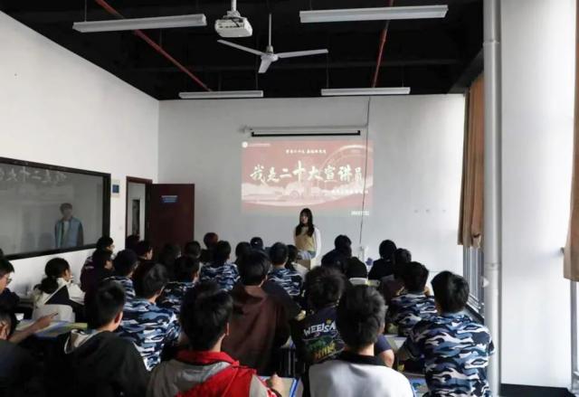 为进一步深入学习领会党的二十大精神,奋力谱写新时代中国特色社会主义育人新篇章,将二十大精神深植学生心中,唤醒每位学生成为二十大精神的广播员、宣讲员。推进新时代文明实践站营造“踔厉奋发、勇毅前行”的奋进氛围,机电工程系党支部开展“我是二十大宣讲员”主题宣讲暨新时代文明实践活动。 江西工贸学院(江西工贸高级技工学校)机电工程系党支部组织委员徐悦欣,于2023年10月20日下午15:30在昌北校区为23级机械制造及自动化2班全体学生展开了一堂生动的形势与政策宣讲课。